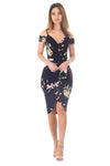 Off The Shoulder Navy Floral Print Bodycon Dress