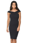 Navy Bardot Bodycon Dress With Ruffle Detail
