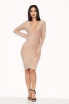 Nude Lace Dress With Frill Hem And Cut Out Back