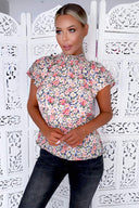 Our Pink Floral High Neck Frill Sleeve Top is the perfect summer top.