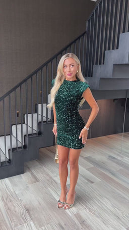 Green Velvet Sequin High Neck Bodycon Mini Dress