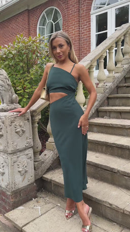 Our Teal Asymmetric Cut Out Midi Dress combines a classic silhouettewith a modern cut out detail, making it the perfect evening dress!Featuring an asymmetric neckline, spaghetti straps, an asymmetric cutout detail, side zip and a midi length skirt. Pair it with barely there heels and some simple jewellery for a sophisticated look.