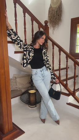Take your outfit to the next level with our Black And Cream AbstractPrint Collared Cropped Blazer. Featuring lightweight lined fabric, anopen front design, a classic collar and long sleeves. Wear it with aplain top and some linen trousers for a cute and versatile look thatwill take you from day to night.