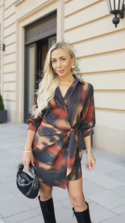 Our Multi Smudge Print Tie Waist Wrap Shirt Mini Dress is perfect forany occasion. Featuring a flattering wrap over tie skirt, anelasticated waist, a shirt collar and 3/4 cuffed sleeves. Pair withboots for the day or dress it up with matching heels and a bag for theevening!