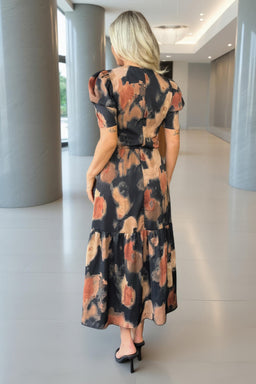 Multi Smudge Print Short Sleeve Smock Midi Dress