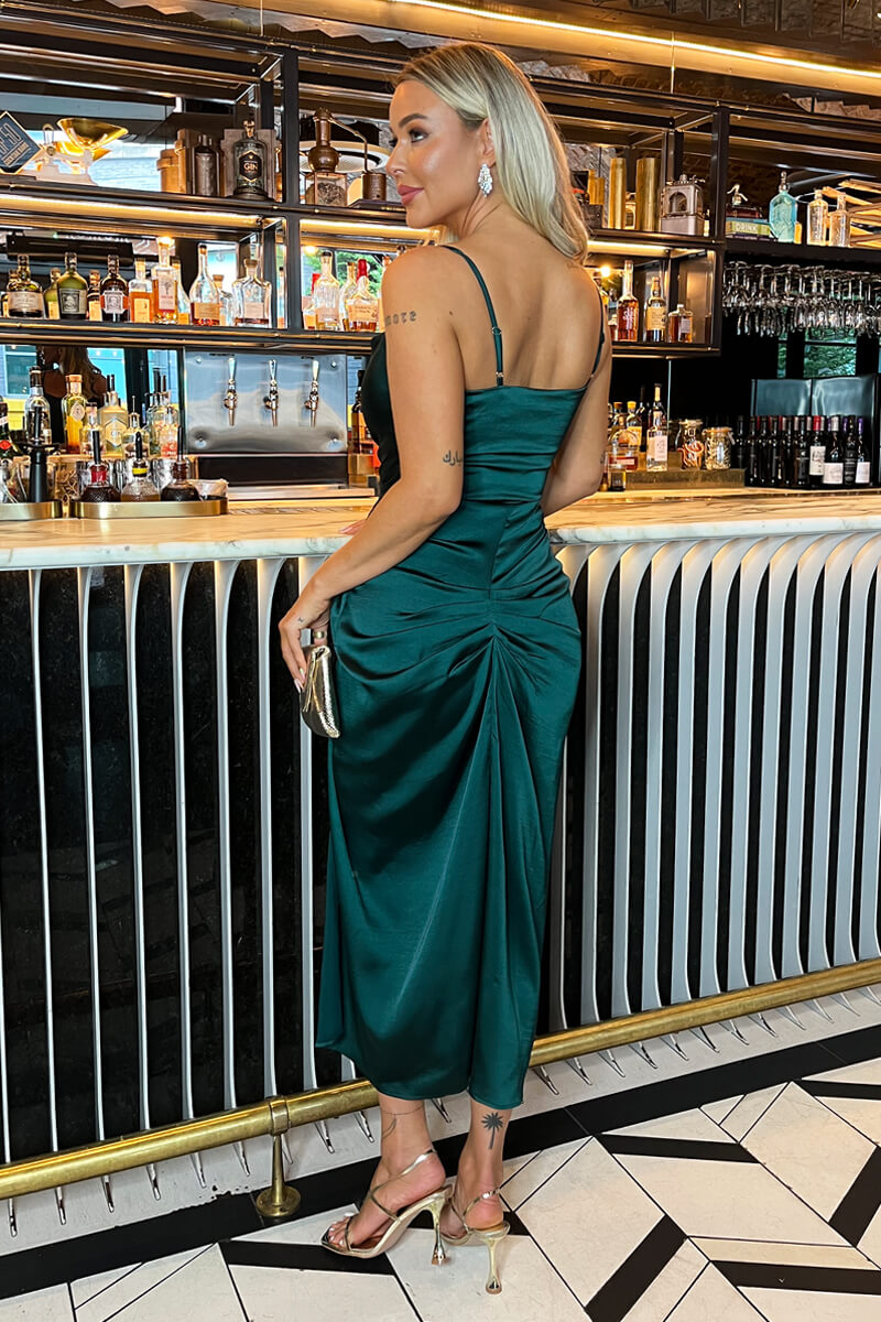 Classy and timeless, our Teal Satin Cowl Neck Knot Skirt Midi Dress is granted to be the talk of the party. Featuring our gorgeous satin-feel fabric, adjustable straps, a cowl neck, a side zip and a knot front draped midi length skirt with split. Dress it up with strappy heels and a matching bag for a sophisticated event look!
