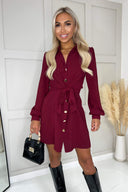 Make this versatile Wine Button Tie Front Mini Shirt Dress your new season uniform. Featuring a gold button front shirt style dress, tie front waist, long cuff sleeves, a mini length skirt with an elasticated waist. Perfect for all occasions from work to dinner and drinks.