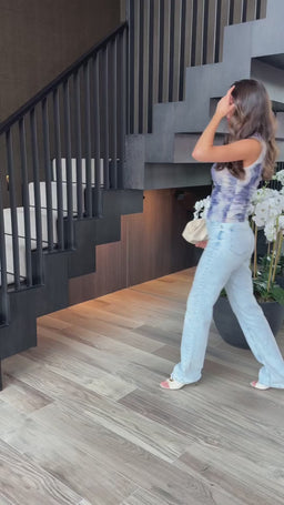 Feel elegant in our Blue Marble Print Mesh Off The Shoulder Ruched Waist Draped Top. Featuring our gorgeous printed mesh fabric, an open off the shoulder boat neckline, draping and a ruched form fitting waist. Pair it with jeans and heels for a date or a night out.