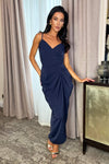 Navy Strappy Wrap Top Gathered Skirt Midi Dress