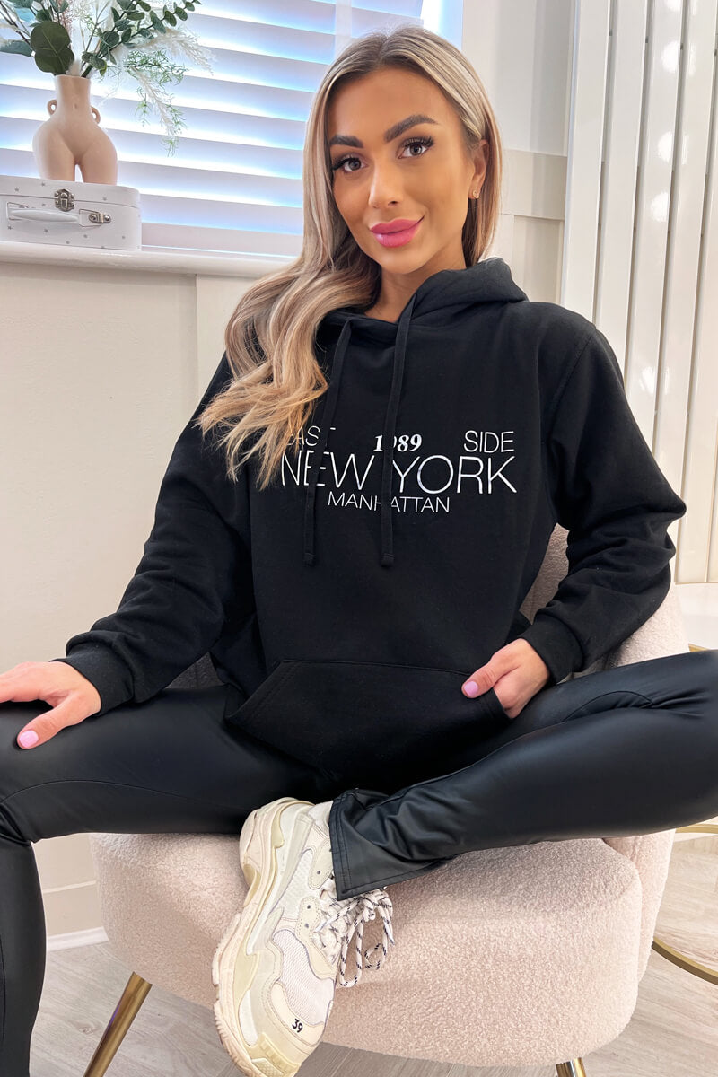 Our Black 1989 New York Slogan Hoodie is the perfect addition to your loungewear collection! With an oversized fit and graphic design, wear it with leggings and trainers this season.