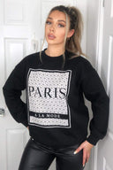 Our Black Paris Printed Sweatshirt is perfect for this season! With an oversized fit and graphic design, wear it with cycling shorts and trainers or glam it up with some jeans!
