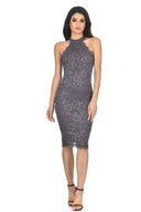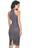Dark Grey Lace Halter Neck Midi Dress