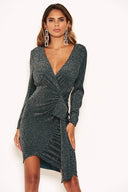 Turn heads in our Teal Glitter Wrap Over Dress! Every girl needs a sparkly black dress in their wardrobe. Complete the look with some killer heels and a clutch!