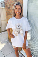 Add our White Teddy Print Oversized Tee to your collection today! With an oversized fit and graphic design, wear it with cycling shorts and trainers this season.